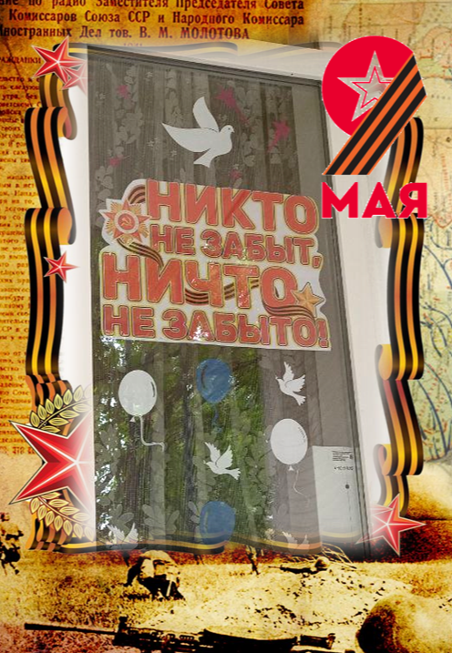 Мы украсили окна , чтобы отметить День Победы, отдать дань памяти погибшим и почтить ветеранов Великой Отечественной войны. Это наше искреннее выражение благодарности и уважения к тем, кто сражался за нашу свободу. Украшая наши окна, мы хотим сохранить память о подвиге наших героев и передать эту важную историческую память будущим поколениям. Пусть символика наших окон напоминает всем о героическом прошлом нашей страны и вдохновляет на мир и благополучие.