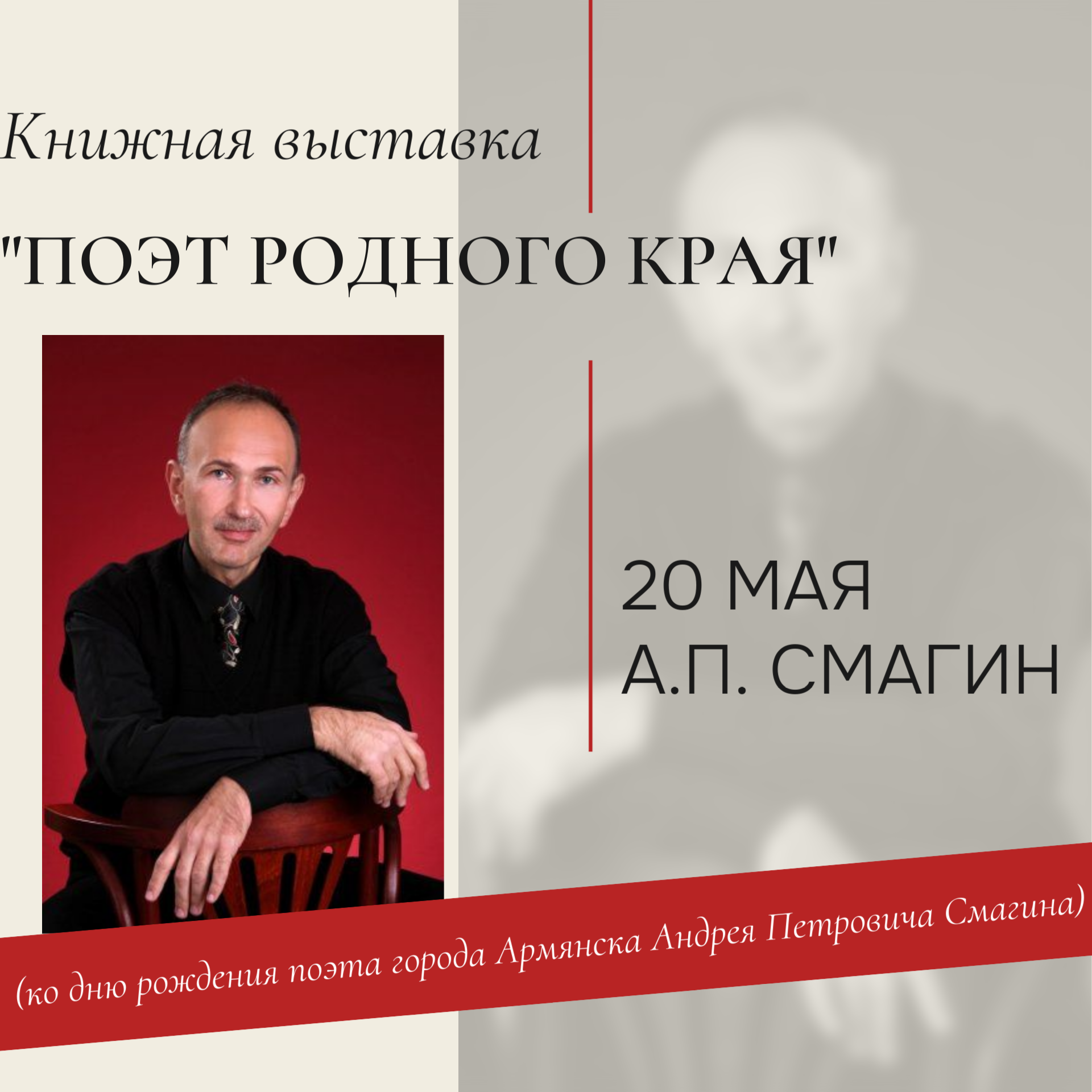 20 мая исполнилось 59 лет со дня рождения Смагина Андрея Петровича, поэта города Армянска.